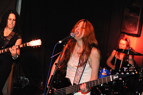 There is a bit of a delay before Maleficent take to the stage as everything is cleared away and new stuff set up (you can see I'm au fait with all these musical bits). Maleficent put on a visual extravaganza that even the barfly lighting fails to ruin. As always these days flashing lights are employed with increasing periods of strobing as the set goes on, until the last song is lit entirely by strobe. This is exactly the same sequence used for Mab and for the last band I saw here. From this pattern I presume there is a standard Barfly guide to lighting, pity it's so short. After a couple of songs I give up trying to capture photos in the brief moments of lightness and use flash. Everything is a bit random so I just take lots of pictures relying on probability and a Nikon SB800.