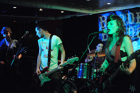 Vulgarians usually play early; sometimes so early that I have missed the beginning of their set. Tonightthey are playing at 10pm, so I don't have to rush to Hoxton. In fact everything is normally late so I catch the end of the first of 4 bands when I arrive just before 9. The lights are a bit odd. On Hannah's side there is hardly any light, and Jim is entirely red, but in the middle the light is quite bright.