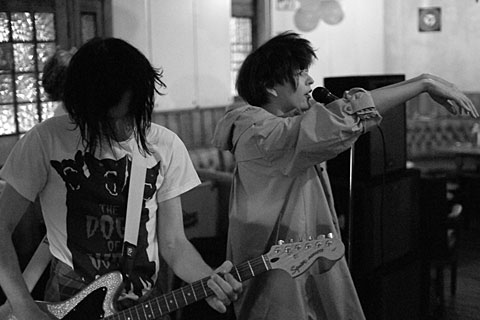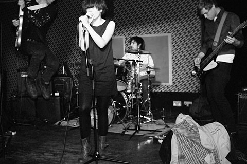 The crowd is thin. The lights are sort of adequate. They would be passable for most bands, thery are not good enough for the speed and distance that Death Cigarettes move during their set (the drummer tends to stay in one place). Using Black and White it is easy to switch to using flash, so I do.