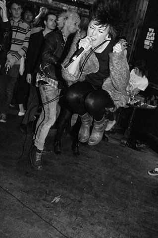 The George Tavern is a nice place but really is a long way from civilisation. I know the venue has no lights at all, so am only planning to do a few blog pictures rather than anything serious. The band are not put off by the intimate (dark) atmosphere of the pub. They throw everything into it. The lack of a proper stage is an opportunity to stand on chairs and tables, and jump off them. I always enjoy this sort of performance and the music is equally rousing.