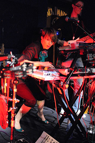 In so far as there is a common thread that runs through the bands that I follow, Eugene Machine may not seem to be a band I should like. They are quite electronic and rather funky, and there are quite a lot of them. Their live act is compelling, culminating in a song where everyone seems to be hitting something. And they move a lot which produces manic photos. On top of this they are all friendly and pleasant to chat to before and after the show.
