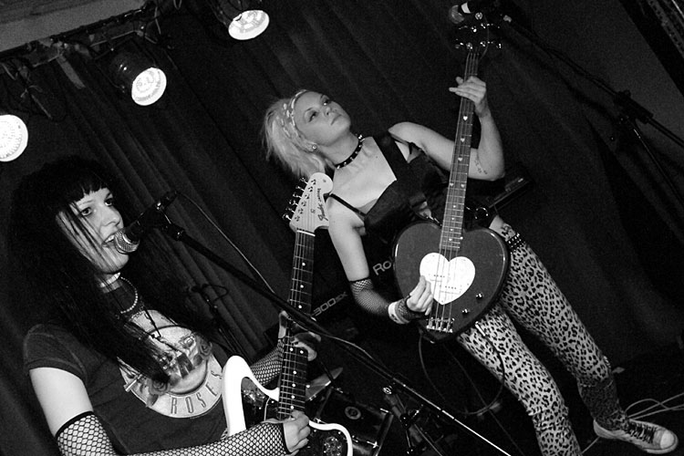 Most of Rubella are bouncing around before they play. They are exuberant and a little nervous; this is their second gig. I happened upon their first a couple of weeks ago and found them entertaining. Tonight I discover they are friendly and pleasant to talk to. On stage they try to be fierce and punky. As they are dressed as Guns and Roses (because they are going on to 80s party) it is difficult for them (and the audience) not to smile.