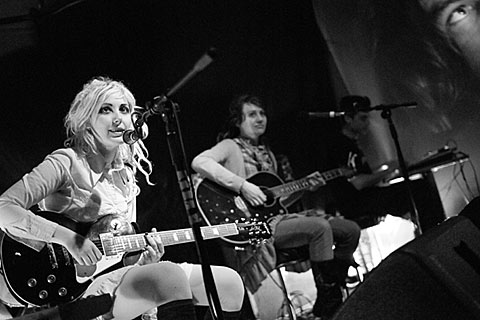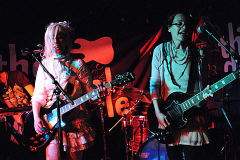 It's a big bill and the bands I've come to see are on at the beginning of the evening, so I arrive fairly early at ten to eight. There's no one taking money so I wander in and watch the Lilies soundcheck. Someone comes round and stamps everyone who already insides's hand. That's a good start to the evening. Lilies On Mars soon take to the stage. I didn't realise they had a drummer and tonight they don't. I wasn't listening properly when they said why but the keyboard player is ill in Italy. Lisa and Marina manage quite well on their own. Lisa has largely recovered from being laid low over new year. There are an astonishing number of people I know to talk to, and some more who seem familiar.
