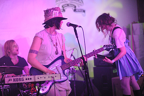 Dogbones are on next. They are not happy with the sound, but battle on. I'm more or less standing in front of a speaker so can't judge the sound. They look impressive and the beat from their two drummers fills the venue.