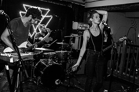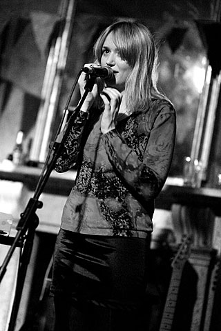 I haven't been to the Old Blue Last for quite a while. Since I was last there they have moved the upstairs bar. I think it is an improvement to have a squarer audience area. They have also removed the lights, I think it might be because work is still in progress, but it is certainly very black tonight; even with my ability to photograph at dimness below normal room lighting I am still left with no option but to use flash.