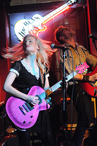 Rival Eyes make a good impression on their first gig and they seem confident with good songs and movement, although Mat tells me afterwards that they were very nervous. I think they will get comparisons with Blondie because they rather remind me of Blondie and Aimee has a big mop of blonde hair. I had no idea what the band would be like when said I'd photograph them so its really good to find that they are worth seeing. Hopefully they will get some songs on myspace soon.