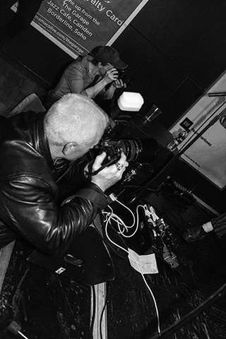 It seems to be fairly common for people with cameras at gigs to bounce flash off a black ceiling. Whilst basic physics suggests that this is rather stupid, it doesn't really harm anyone. But bouncing the flash off the audience is extremely annoying. Tonight I was nearly blinded by this photographer who either had no idea where his flash was pointing or was deliberately trying to blind me. It's easy enough to laugh at someone who turns up at 'Upstairs at the Garage' with equipment that looks sutable for a safari (because it is laughablely unsuitable to have two big cameras with lenses that look as if they are a substitute for the middle-life-crisis sports car ), but whether you are a band or just in the audience beware of people with more equipment than intelligence. Fortunately the bands were good and my eyes recovered after 15 minutes.